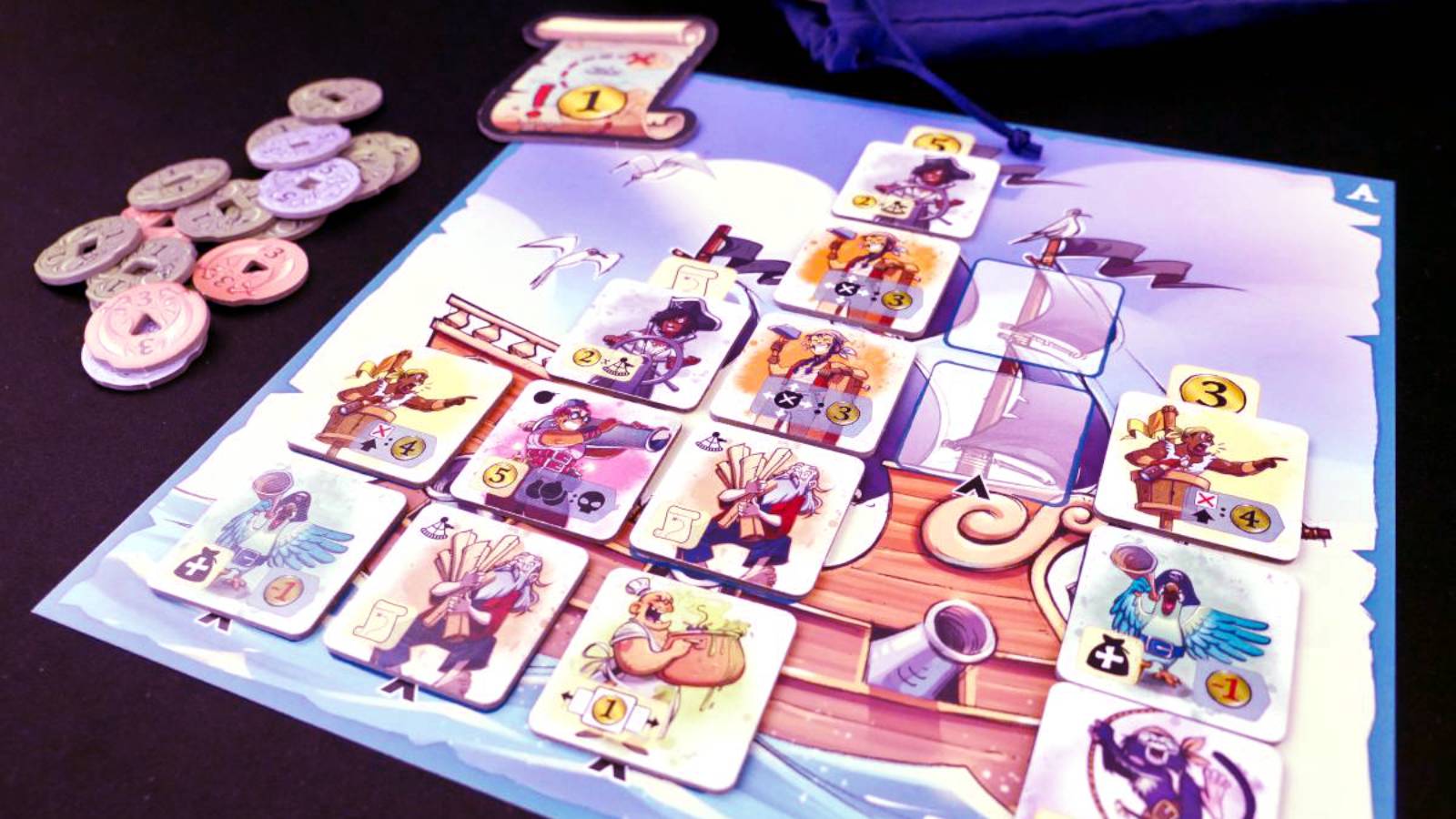 Sometimes, placement is about setting up future scoring opportunities. A Gunner needs to be put somewhere that won't block out too many spots for any potential Carpenters later. Swabbies need to be spread out across all columns. Lookouts need to be the top-most tile in a column to score, so maybe you fill up a column as far as you can to leave a spot for any potential Lookouts you draw. Same goes for special columns on boards that grant bonus actions when filled, which you might leave open until you want to enact that action (like the one that lets you steal the Map token).