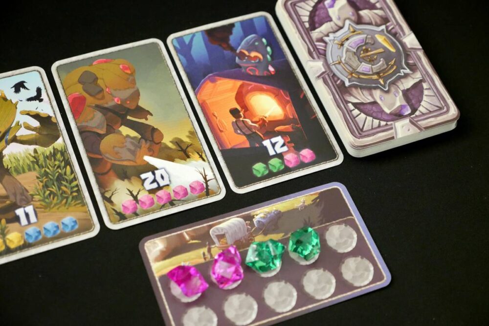 Every player has a Caravan for storing crystals. The Caravan has a limit of 10 crystals, so that's part of the challenge: you aren't just amassing crystals but rather juggling them while staying within the limit. If you have more than 10 at the end of your turn, you have to discard the excess.