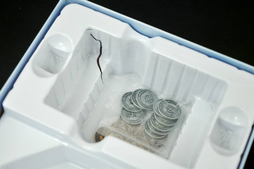 While the metal coins are stunning, they're overkill. On the one hand, metal coins are awesome. I love them. They're hefty, tactile, and substantial. It doesn't get more premium than this with tokens in board games. But the Copper/Silver Coins in Century: Golem Edition aren't important enough to get such premium treatment. There are only 10 of each and you rarely handle them—when you earn a coin, you just move it in front of you and it's never touched again. I honestly would've preferred cardboard here to shave a few bucks off the MSRP while providing a comparable experience.