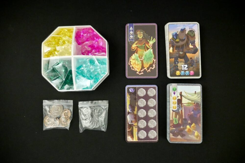 There are only a few elements that are slightly gamery, like the Copper/Silver Coins for Golems, the paying of crystals to buy certain Merchant cards, and the sliding of cards as they're bought. But they're no problem to learn, even for most non-gamers.