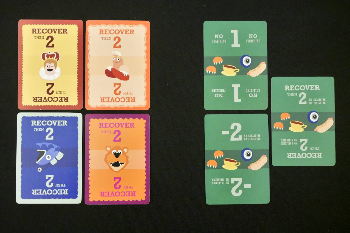 Every mascot starts with a Recover card in the race deck, which means every mascot can always potentially Recover—at least at the start. These starting cards could end up being removed in later races. More on how this happens down below.