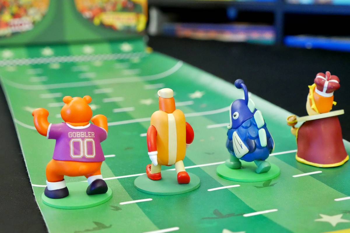 The mascot minis are cute, wacky, and instantly draw your attention. More importantly, they're unlike any style of miniature I've seen in a board game, and that makes them stand out with a unique identity. They're welcoming and approachable—unlike, say, dragons or demons—and I love their size and heft. They have presence and they feel good to move around on the race track. They're basically toys that bring out the child within you.