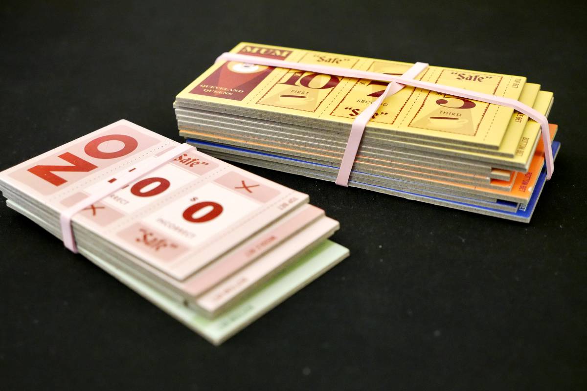As soon as you take a betting ticket, you have to decide if you want to keep it on its Safe side or flip it over to its Risky side.