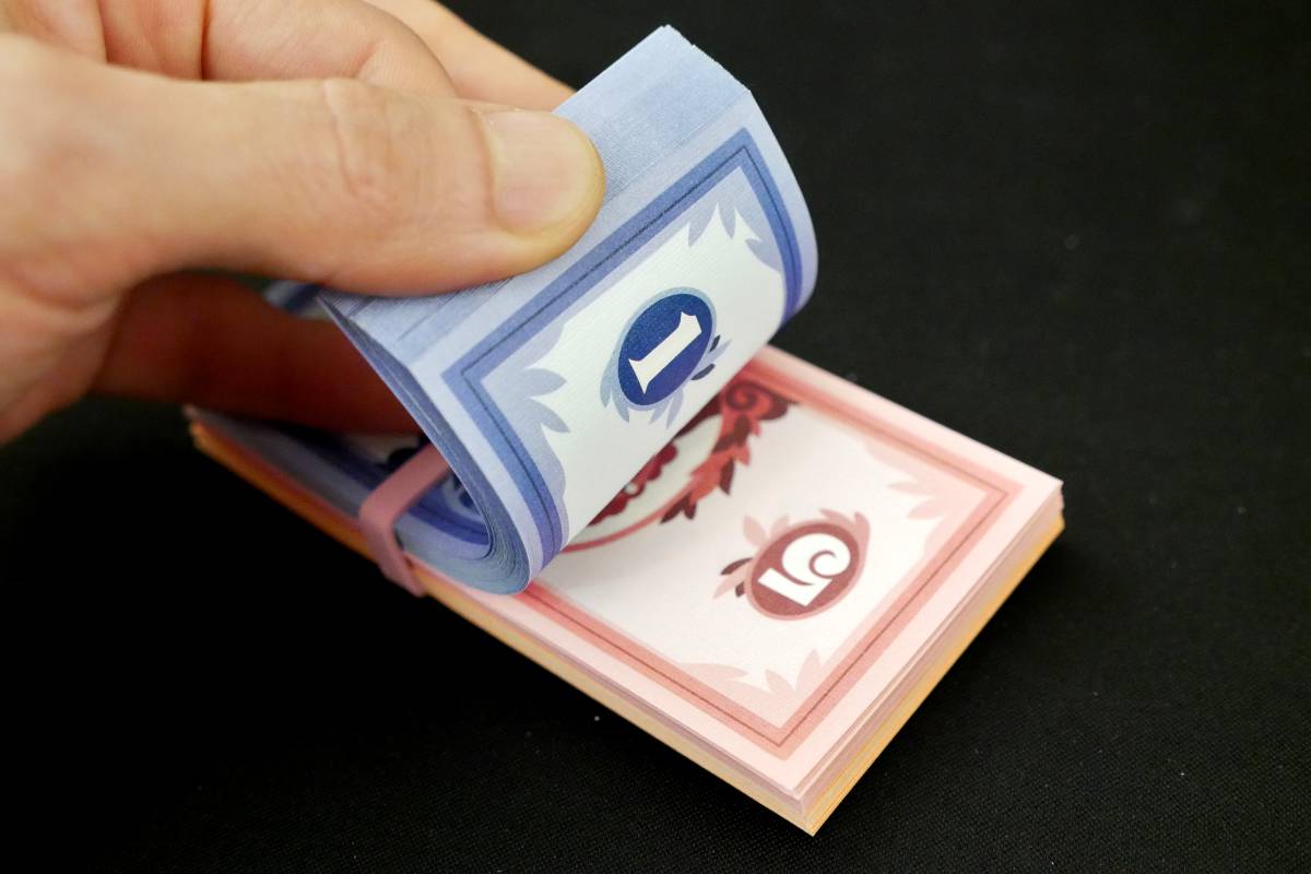 The paper money is a pretty big negative. Sure, it's nicer than the other paper money I've seen in games, but it's still difficult to handle. While the surface is textured and feels premium at first, it's still thin and small and sticks together. I hate trying to peel off a single $1 or $5 bill, and it takes more fiddling than it should. I'd absolutely prefer chips or tokens, which are the norm in board games for good reason.