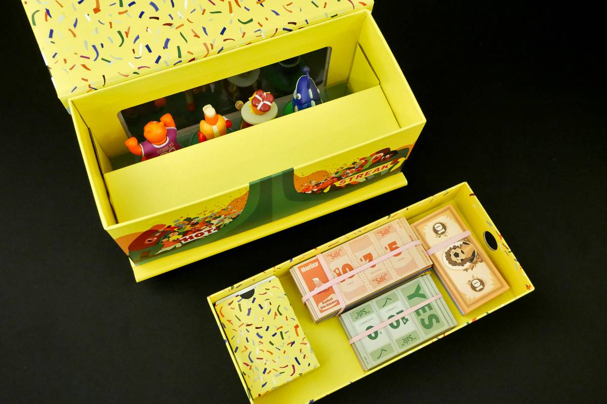 Hot Streak is the ultimate race betting game for people like me. Unlike Long Shot: The Dice Game and Camel Up and Ready Set Bet, this one is extra light on rules and decisions. It basically plays itself. It's as close as it gets to the experience of showing up at a race track, putting money down, and hoping for the best—yet it doesn't take itself seriously at all. It's wacky, it's chaotic, and it's unpredictable. Not just a betting game, it's a party game.