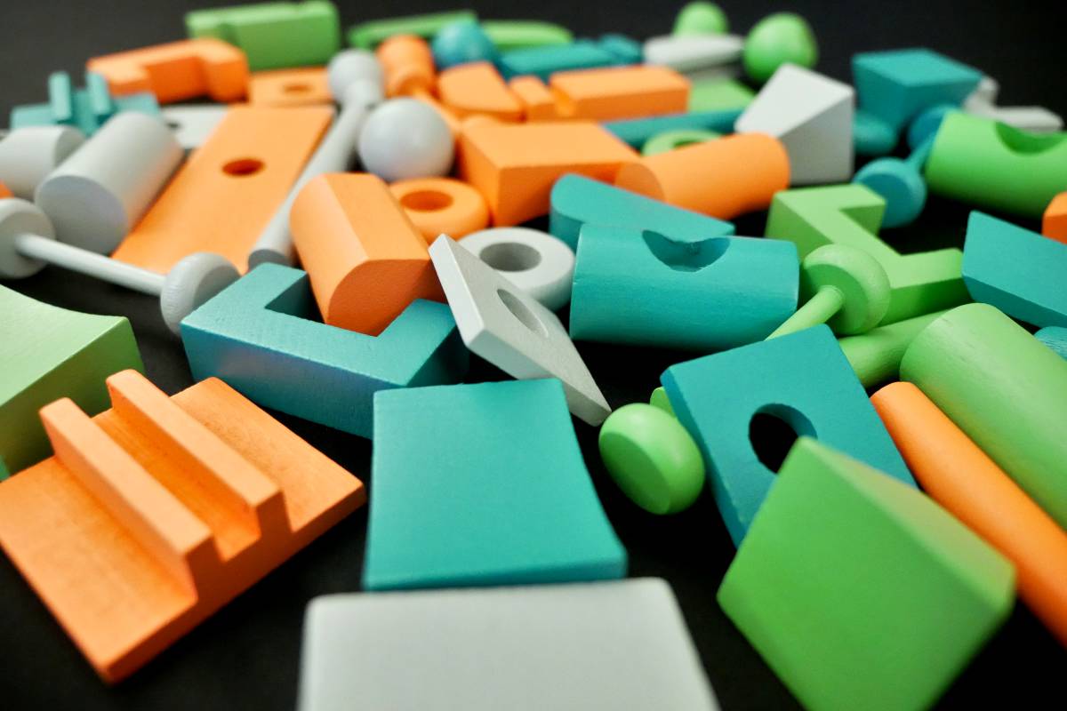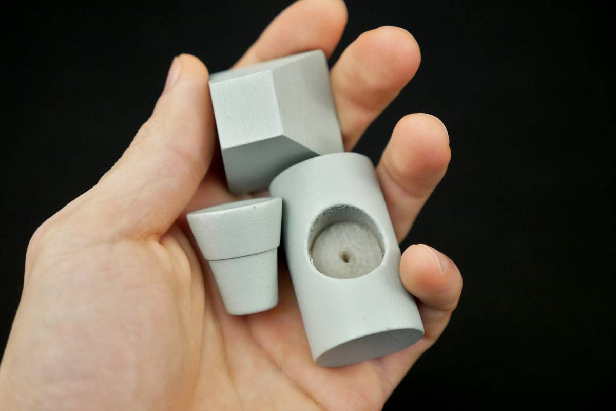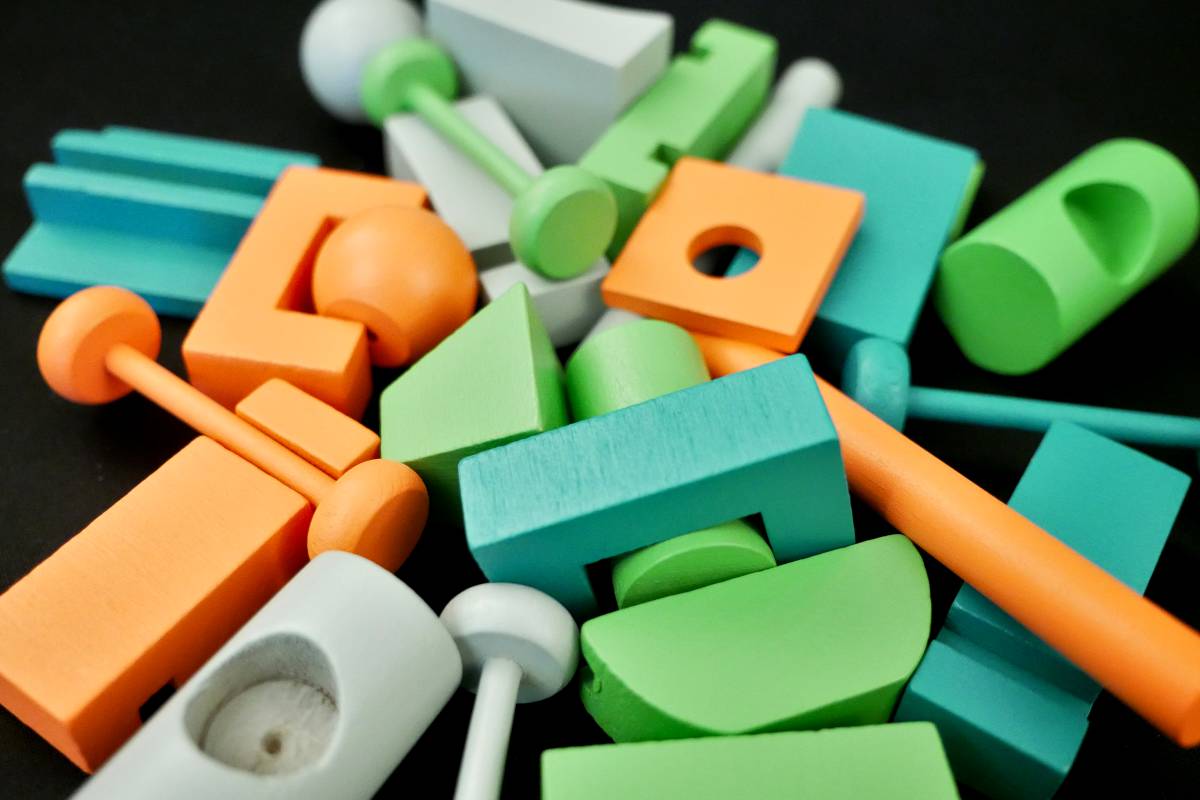 In Junk Art, there are 15 unique Junk pieces in 4 colors each (Red, Blue, Green, White). Some are flat, some are round. Some squat, some long. Some have protrusions while others have holes. And though it may seem like some pieces fit neatly together, they don't always. They're all peculiarly imperfect.