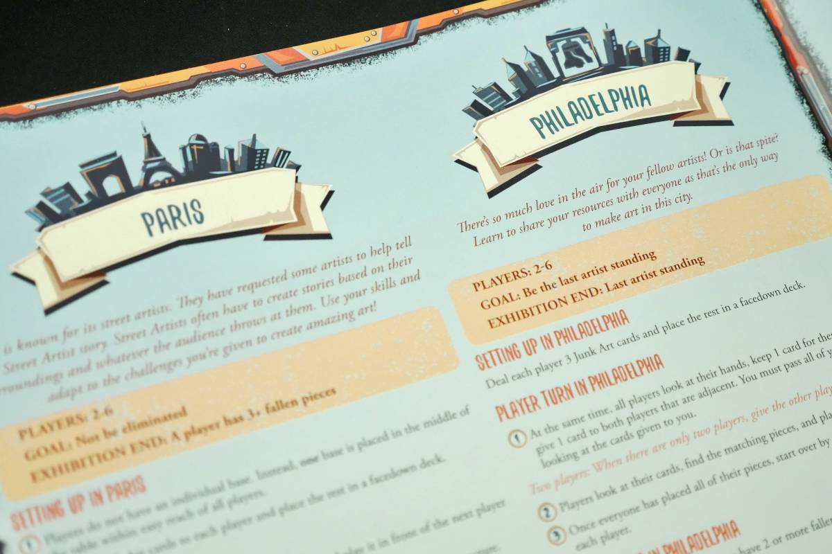 After that, setup will depend on the City. Some may require you to separate the Junk Art cards into separate decks per players, others may mash them all together into a single deck. Nashville and New York also add special cards to the Junk Art deck. But overall, it's straightforward.