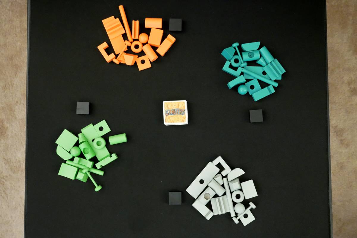Unfortunately, some of the Junk pieces have manufacturing defects. This is my biggest gripe with the wooden version of Junk Art and the reason why I've soured on the overall experience. Some of the pieces—most notably the barbell-shaped one—aren't the exact same across all 4 colors, which gives certain players a disadvantage. It sucks when you're trying to balance a piece that should be flat but is actually skewed. It's game-breaking.