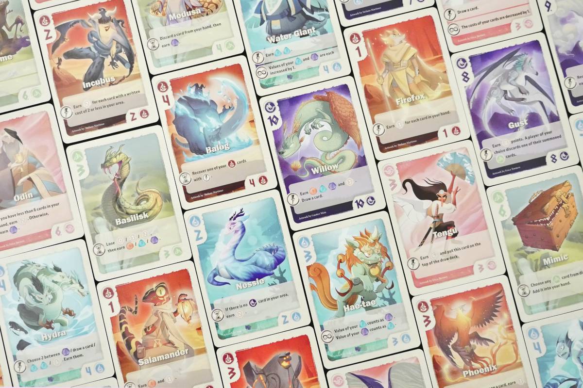 The Vale of Eternity has a very Pokémon-esque theme: you're a tamer who goes out into the Vale to hunt and capture legendary monsters with special abilities that ultimately score you victory points. Mechanically, The Vale of Eternity is an engine-building game that blends card drafting and hand management with an emphasis on action efficiency.