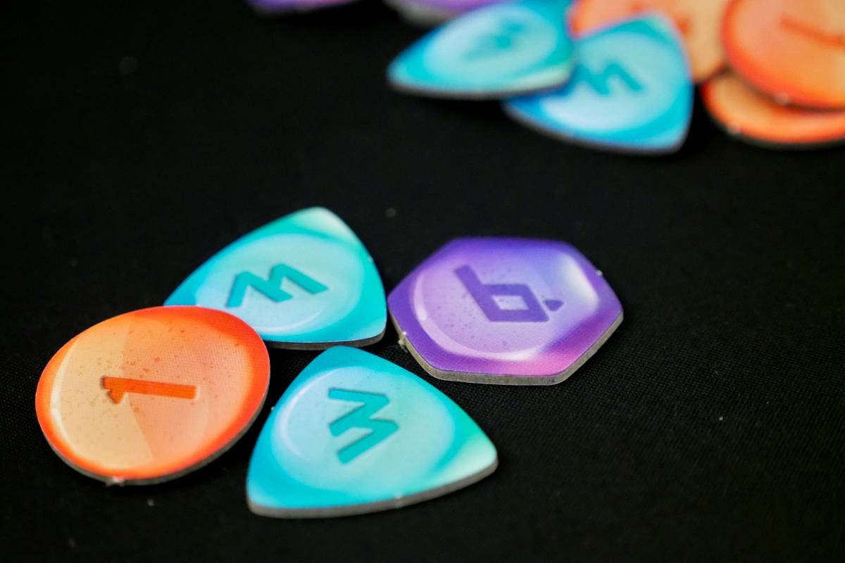 I wish the Magic Stones were glass beads. For a game that's surprisingly thoughtful about the tactile experience, I wonder why the Magic Stones are flat and lifeless cardboard tokens. They're thin but wide, which makes them unsatisfying to handle—and you're constantly spending and gaining these stones, so you definitely feel it. Mancala-style glass beads would've been a much better option that truly elevated the experience.