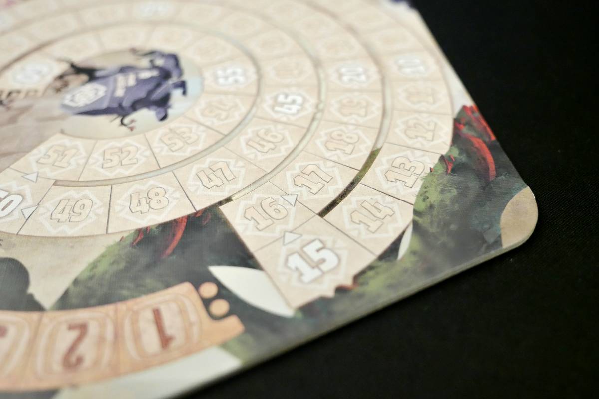 Plus, you have the tension of the race. The Vale of Eternity ends as soon as someone crosses the 60-point threshold, and everyone's point status is visibly tracked on the Score Board. Those Score Markers creep up along the track with every turn and it's interesting to see how players jockey for position. Sometimes a big turn happens and the player in last place jumps up to first place, upsetting the balance and surprising everyone else.